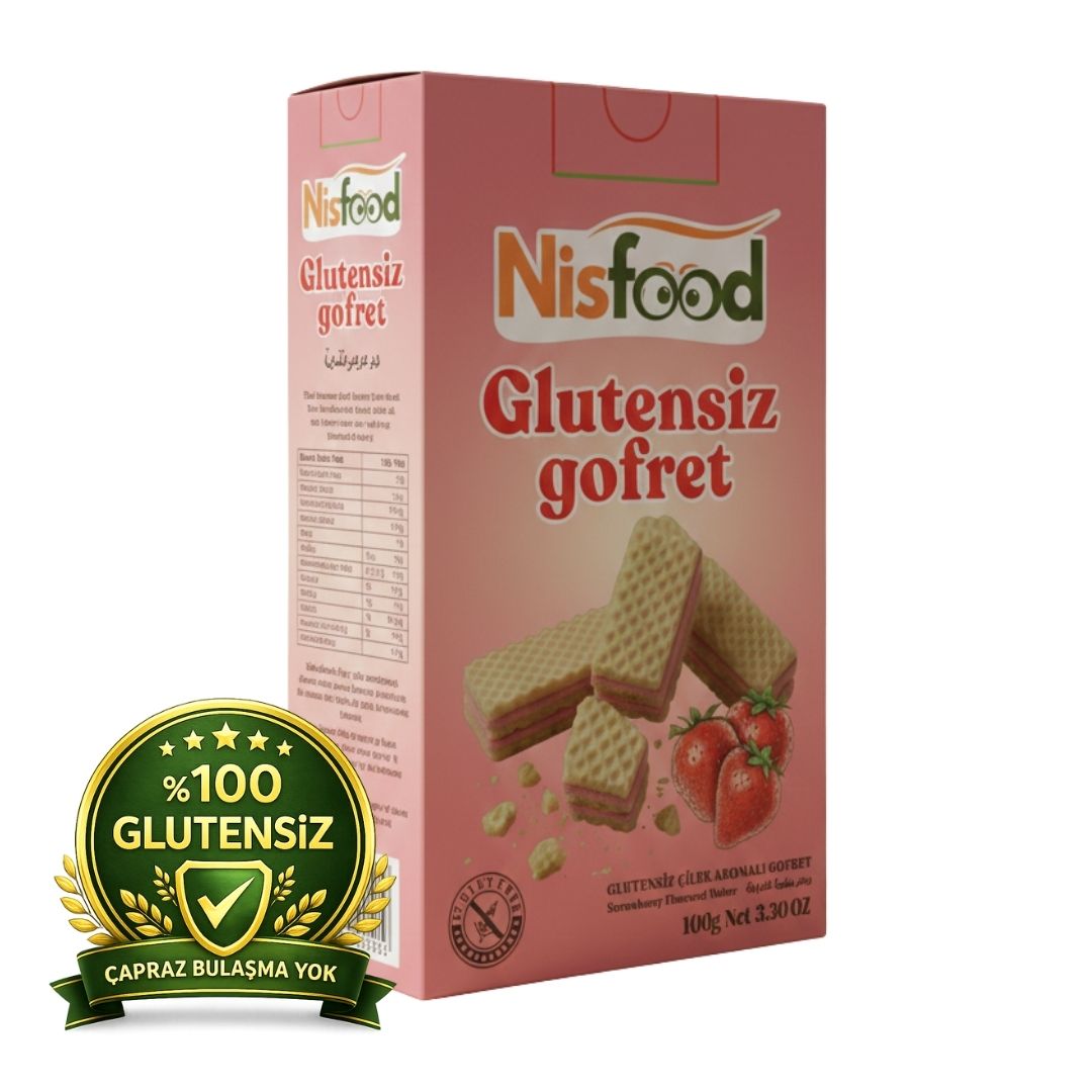 Glutensiz Gofret Çilekli 100 gr NisFood